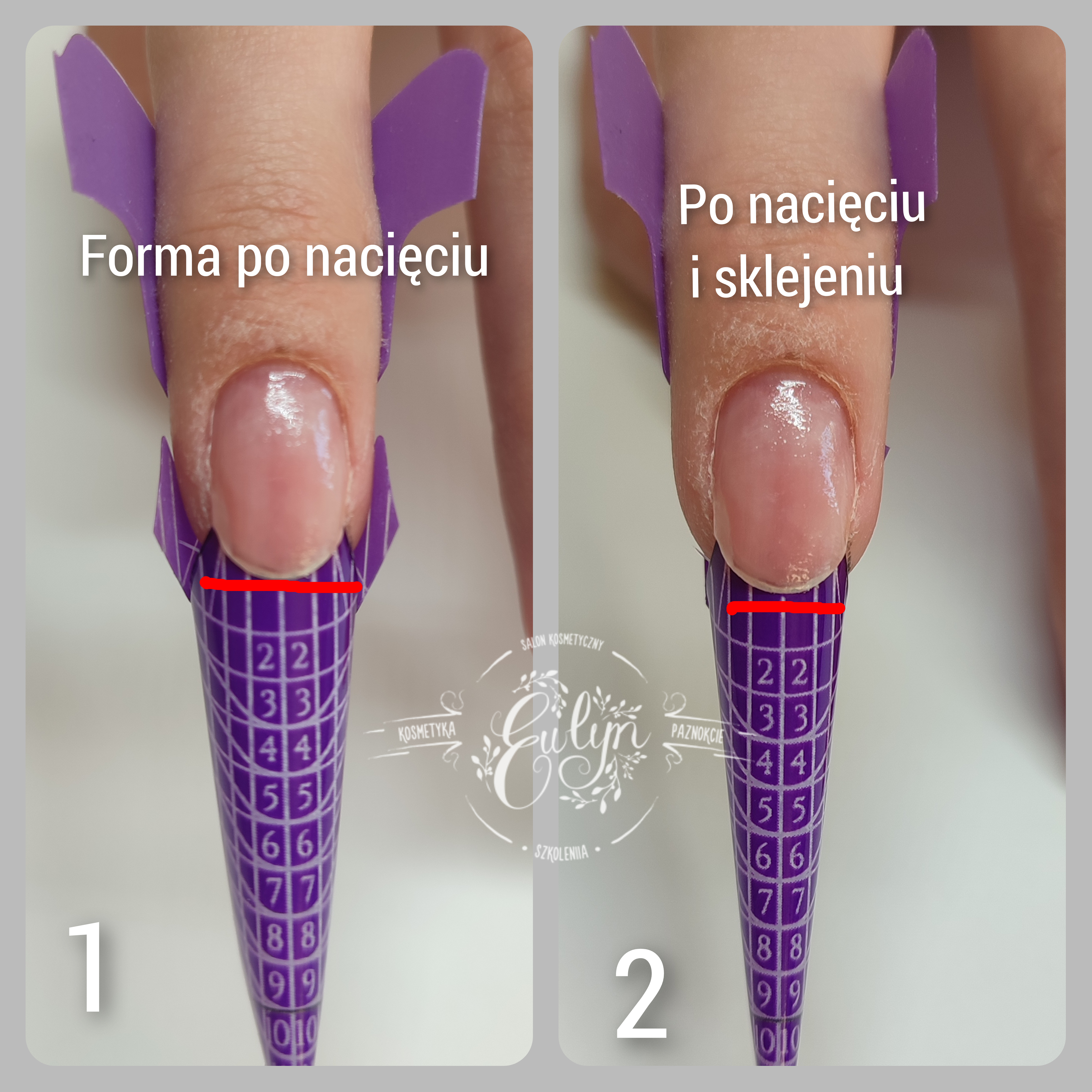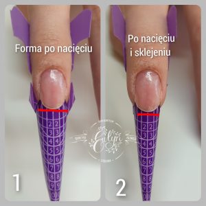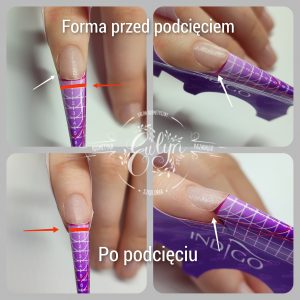 👉W przypadku paznokci z naturalnie głębokim tunelem lub paznokci głęboko osadzonych prawidłowe podłożenie formy bez nacięcia byłoby praktycznie niemożliwe.