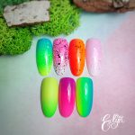 Szybkich i dziecinnie prostych zdobień, które można wykonać w maksymalnie 5 minut! Z wykorzystaniem różnych produktów, m.in.: brokatów, pyłków, folii, lakierów hybrydowych, żeli do zdobień, past itp…
